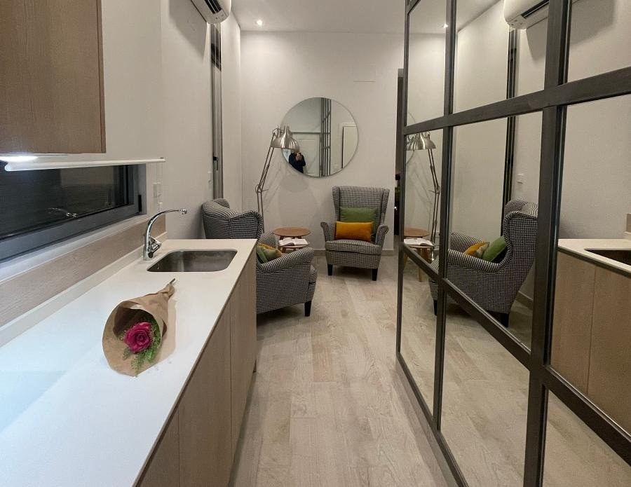 It consists of a bedroom, office, separate living room with kitchen and bathroom. They all have air conditioning, heating, telephone, free Wi-Fi, TV, kitchenette, kitchenware, microwave, oven, refrigerator and coffee maker.